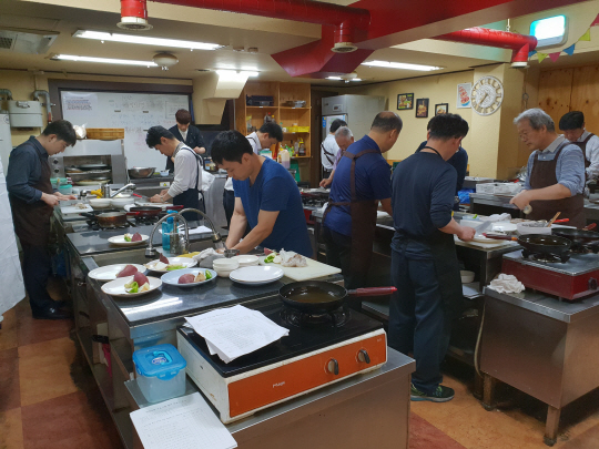구는 생활 속 평생교육의 기회를 확대하고 구민 삶의 질 향상을 위해 지난 5월부터 10월까지 설계 및 공사 기간을 거쳐 한국방통대 열린관 3층에 평생교육센터를 열게 됐다. 총 574.15㎡ 규모로 ‘평생학습관’ 및 ‘진로직업체험지원센터’가 자리하고 있다. 쾌적한 환경의 강의실에서부터 평생학습 동아리가 언제든지 사용할 수 있는 동아리실, 관내 평생교육기관의 정보를 한눈에 얻을 수 있는 자료실 등으로 구성했다. 향후 지역 내 평생교육 거점기관으로 활약하며 맞춤형 평생교육 서비스 제공에 큰 역할을 할 것으로 기대를 모은다. 개관식은 △1부 기념식 △2부 도올 김용옥 선생의 개관 기념 ‘배움의 즐거움’ 특강 △3부 동네배움터·평생학습 동아리 성과공유회 순으로 이어진다. 구 관계자는 “4차 산업혁명과 100세 시대를 맞아 배움에 대한 진정한 의미를 되새겨볼 수 있는 뜻깊은 시간이 될 것”이라고 설명했다. 이 밖에 올 한 해 종로구 평생학습의 성과를 되돌아보고 우수사례를 소개하는 성과공유회에는 7개 동네배움터 9개 평생학습 동아리팀이 참여해 사례를 발표한다. 종로구는 그간 주민들을 위한 맞춤형 평생교육 프로그램으로 ‘아빠 요리교실(사진)’‘건축 교양 학교’ 등을 꾸준히 운영해왔다.