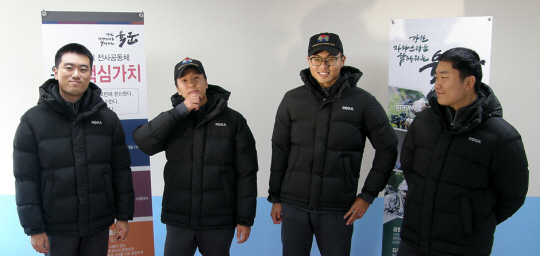 국군 장병들이 국방부가 한겨울 매서운 추위에 노출된 경기, 강원 등 전방 지역 병사들을 위해 올해 처음으로 보급한 패딩형 겨울 점퍼를 입고 밝은 표정을 짓고 있다.