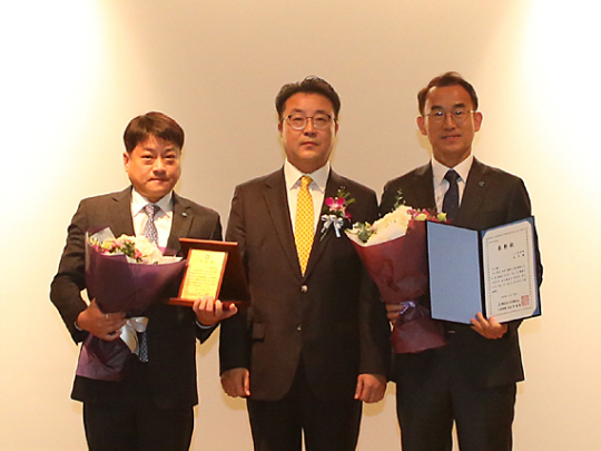 창립 기념식에서는 장기 근속자와 공로자에 대한 포상도 이뤄졌다. 동아쏘시오홀딩스 인재개발원장 김풍국(사진 오른쪽) 상무 외 13명이 30년 근속상을, 동아ST 경영관리본부 유통관리실장 김윤경 부장 외 35명이 20년 근속상을, 동아쏘시오홀딩스 부패방지위원회 현정근(왼쪽) 차장이 단체공로상을 수상했다.