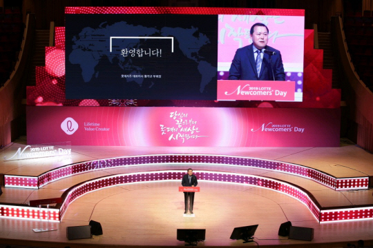 롯데는 지난 17일 서울 송파구 올림픽로 롯데월드몰 롯데콘서트홀에서 황각규 롯데지주 부회장이 참석한 가운데 2019년 하반기 신입사원 환영행사 ‘롯데 뉴커머스 데이’(Lotte Newcomers’ day)를 진행했다고 18일 밝혔다.