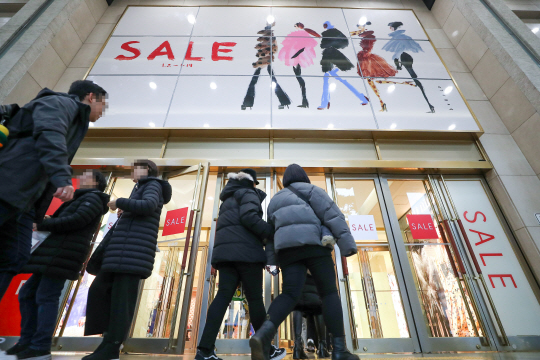 주요 백화점이 일제히 신년 세일에 들어간 2일 오후 서울 중구 남대문로 롯데백화점 매장에 세일 안내문이 걸려 있다.