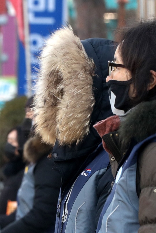 강추위가 찾아온 9일 오전 대전 서구 탄방동 거리에서 시민들이 두꺼운 외투를 입고 출근길을 서두르고 있다. 전국 대부분의 지역은 이날 아침 최저기온이 영하 3도까지 떨어지는 등 평년 수준을 회복했다.