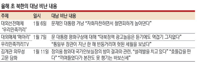 북한이 또다시 ‘대북제재 완화와 비핵화 조치 교환 불가’ 방침을 밝히면서 문재인 정부의 대북정책 기조가 전면 전환돼야 한다는 목소리가 높아지고 있다. 전문가들은 지난 7일 문재인 대통령의 신년사 제안에 대해 “사실관계 파악이나 맥락에서 벗어나 있다”면서 북한 비핵화를 원칙으로 한 대북정책 재정립을 강하게 주문했다. 특히 전문가들은 정부의 비현실적 대북정책이 한·미 동맹마저 흔들고 있다면서 한·미 공조 복원과 일본·중국·러시아 등과의 다각적 외교가 필요하다고 입을 모았다.