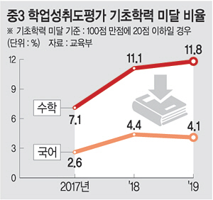 교육부가 올해 3월부터 초1∼고1의 모든 학생에 대한 기초학력 진단을 의무화하겠다던 방침을 철회한 것으로 확인됐다. 전국교직원노동조합(전교조) 등이 ‘일제고사 부활’이라고 강하게 반발하자 교육부가 한발 물러섰다는 관측이 나오고 있다. ‘재난 수준’ 평가가 나올 정도로 기초학력 미달(100점 만점 중 20점 이하 획득) 학생이 늘고 있지만, 교육부가 뒷짐만 진다는 비판도 나오고 있다.