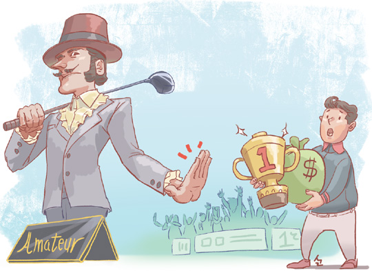 1913년 불과 스무 살의 나이로 당대 최고의 골퍼 영국의 해리 바든을 꺾고 US오픈에서 우승하면서 미국에 골프붐을 일으키며 국민적인 영웅이 된 프랜시스 위멧(1893∼1967)이나, 1930년 골프 역사에서 전무후무한 한 해 4대 메이저대회 석권이라는 그랜드슬램을 달성한 미국의 보비 존스(1902∼1971)가 엄청난 돈의 유혹을 끝까지 뿌리치고 죽을 때까지 아마추어 신분을 유지한 것도 이 때문이다.