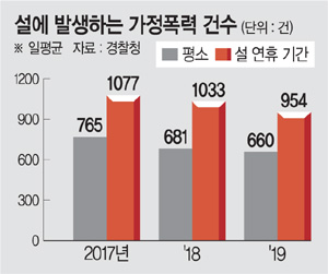 가족이 모여 정을 나누는 설 명절이 무색하게 명절 연휴 사이 가정폭력이 평소보다 더 많이 발생하는 일이 반복되고 있다. 또 누적돼온 가정불화가 명절 기간에 폭발해 ‘명절이혼’에 이르는 세태도 여전한 것으로 나타났다.
