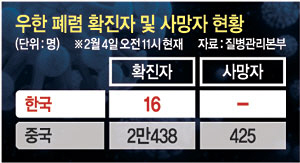중국 국가위생건강위원회(위건위)는 4일 0시 현재 전국 31개 성·시·자치구에서 우한 폐렴 누적 확진자가 2만438명, 사망자는 425명으로 집계됐다고 발표했다. 지난해 12월 31일 우한 폐렴 환자 27명이 보고된 이후 1개월여 만에 2만 명으로 급증한 것이다. 중국 전역에서 확진자 수는 하루 전보다 3235명 늘었다. 지난달 31일 하루 확진자 수가 2102명으로 처음 2000명을 넘은 뒤 4일 만에 3000명을 돌파했다. 사망자 수도 하루 새 64명 늘어 지난달 20일 위건위가 공식 통계를 발표한 이후 처음으로 60명을 넘었다. 중국 정부가 전염병과 전쟁을 선포하고 국가 비상사태에 준해 방역에 총력을 기울이고 있지만 확산세를 잡지 못하고 있다. 특히 발병지 우한(武漢)이 포함된 후베이(湖北)성에서만 사망자와 확진자가 하루 동안 각각 64명과 2345명 늘었다. 후베이성 전체의 누적 확진자는 1만3522명에 달했으며, 우한 확진자는 6348명, 사망자는 313명이었다. 이날 홍콩에서도 중국 본토 외 지역에서는 두 번째로 39세 남성 확진자가 사망했다.