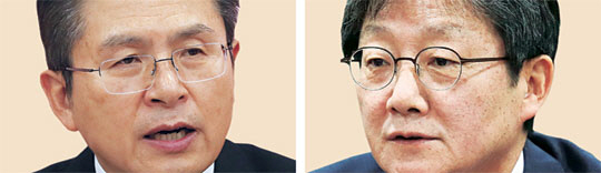 중도보수 통합의 ‘키’를 쥐고 있는 황교안(왼쪽 사진) 자유한국당 대표와 유승민(오른쪽) 새로운보수당 보수재건위원장의 회동이 계속 늦어지면서 통합 효과가 갈수록 떨어진다는 비판이 나온다. 황 대표는 현 한국당 지도부를 중심으로 통합신당 지도부를 꾸리려 하는 등 기득권을 놓지 않으려는 모습을 보이고, 유 위원장은 통합신당 내 입지 축소를 우려해 주저하고 있다는 지적을 받고 있다.