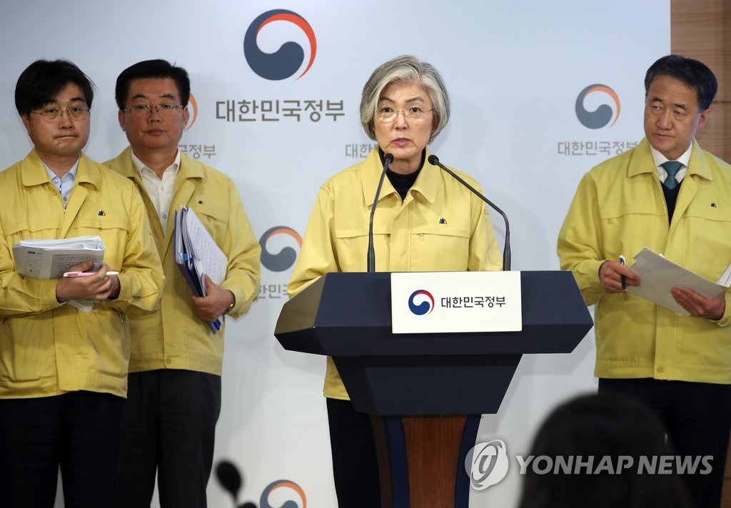 강경화 외교부 장관이 지난 9일 오후 정부서울청사 브리핑실에서 신종 코로나바이러스 감염증과 관련 우한 교민 이송 위해 임시 항공편 1편 추가 투입한다고 밝히고 있다.