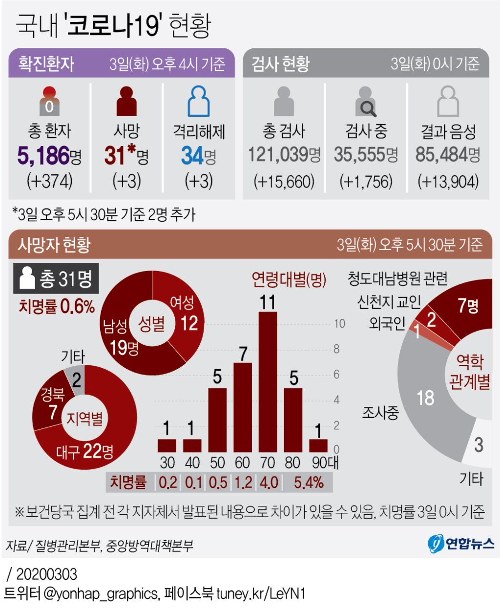 이에 따라 코로나19 국내 사망자 수는 31명으로 늘었다.