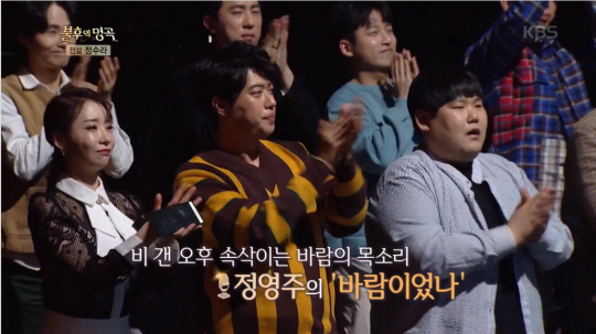 KBS 2TV ‘불후의 명곡’(사진) 녹화장에서도 일반인 판정단 대신 연예인들이 객석에 앉았다. 지난 달 녹화 때는 ‘불후의 명곡’을 진행하는 선배 신동엽을 응원하기 위해 후배 개그맨들이 대거 녹화를 관람하며 열띤 호응을 보냈다. 이외에도 KBS 2TV ‘유희열의 스케치북’ 녹화 중에는 MC인 유희열이 출연 가수들의 무대를 보며 다양한 리액션을 취하는 등 색다른 재미를 주고 있다. KBS 관계자는 “안전을 우선적으로 고려해 관객 없이 녹화를 진행하고 있는데, 무대에 대한 반응이 없으면 재미도 반감될 수밖에 없다”며 “동료 연예인들이 발벗고 나서 이 공백을 메우며 서로에게 힘이 되고 있다”고 말했다.
