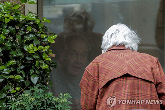 신종 코로나바이러스 감염증(코로나19)으로 생이별을 하게 된 미국 80대 부부가 창문 너머로 안부를 확인하는 장면이 카메라에 포착됐다.