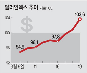 달러화 가치 9거래일간 9%↑