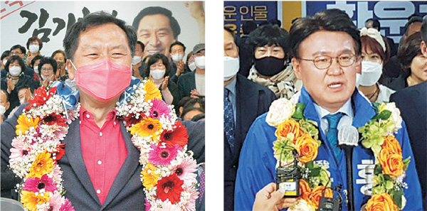 지난 2018년 울산시장 선거와 관련, ‘청와대 하명수사 및 선거개입’ 의혹을 둘러싸고 진실공방을 벌였던 황운하(오른쪽 사진) 전 울산지방경찰청장과 김기현(왼쪽) 전 울산시장이 각각 더불어민주당과 미래통합당 후보로 나선 21대 국회의원 총선거에서 나란히 당선되면서 “원수가 외나무다리에서 만나게 된 형국”이라는 평가가 나온다.