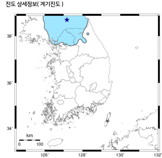 진앙은 북위 38.68도, 동경 127.18도이다.