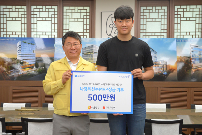 서양호 중구청장은 “MVP로 받은 뜻깊은 상금을 흔쾌히 후원해 준 나경복 선수에게 진심으로 감사드린다”며 “지금까지 도움을 주신 많은 분의 노력이 헛되지 않도록 더 철저한 방역으로 중구를 지키도록 하겠다”고 말했다.