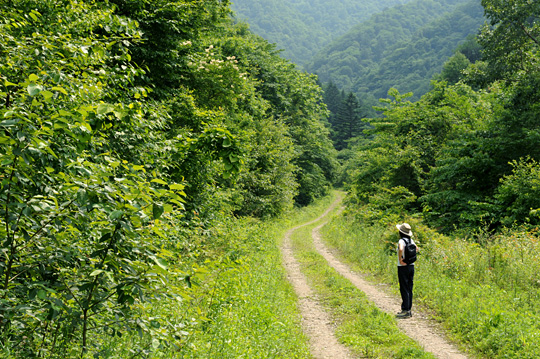강원 양양의 미천골자연휴양림은 유독 첩첩산중에 있다. 미천골휴양림은 인제군 기린면 진동리에서 조침령터널을 통과해 갈 수도 있고, 홍천군 내면에서 구룡령을 넘는 길도 있다. 미천골자연휴양림을 가는 길에는 반질반질한 암반이 펼쳐진 수려한 계곡이 이어진다. 미천골은 백두대간 약수산(1306m)과 응복산(1360m) 사이에서 발원해 남대천으로 흘러가는 후천의 최상류다. 계곡 물은 가물어도 마르지 않을 뿐만 아니라 어디서든 그냥 마셔도 될 만큼 깨끗하다. 휴양림 가는 길에 폐사지인 선림원지가 있다. 빈 절터에 보물로 지정된 삼층석탑과 승탑, 홍각선사탑비 등이 1000년이 넘게 제자리를 지키고 있다. 절집에서 쌀 씻은 물이 흘러내렸다 해서 계곡 이름이 ‘미천(米川)골’이다. 휴양림을 지나 길을 끝까지 따라가면 불바라기 약수로 오르는 길이 있다. 차량 차단기가 내려진 임도다. 여기서 불바라기 약수까지는 5.7㎞. 경사가 완만해 왕복 3시간이면 충분하다. 계곡 물소리, 새소리, 바람 소리를 벗 삼아 걷는 길이 청량하기 이를 데 없다.