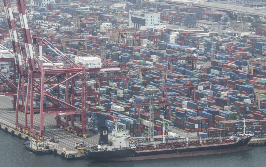 수출 앞둔 부산항 컨테이너