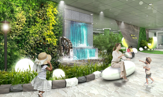 구는 이번에 미세먼지 프리존 벽면 420㎡에 산호수·테이블야자·더피고사리 등 공기정화식물을 수직으로 재배하는 최신 녹화 공법을 적용한다. 인공폭포(사진)를 설치해 시원한 물소리를 들을 수 있는 휴식공간도 조성한다.