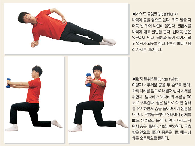 바닥에 모로 기대 골반·몸 일자로 하면 근력 향상