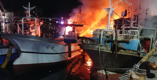 통영서 어선 2척에 화재