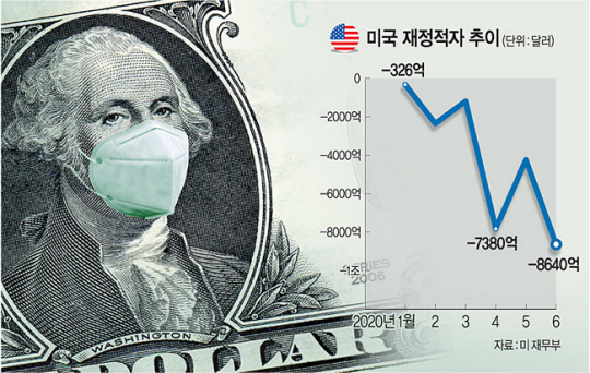 미국의 6월 연방 재정적자가 신종 코로나바이러스 감염증(코로나19) 사태 여파로 역대 최대치인 8640억 달러(약 1041조 원)를 기록했다. 이에 따라 2020년 회계연도 누적 재정적자도 사상 최대치였던 2009년 글로벌 금융위기 당시 적자 규모를 뛰어넘을 전망이다. 전문가들은 “올 하반기 경기회복이 더딜 경우 각국의 사상 최대치 재정적자가 최악의 경기 악순환을 초래할 가능성이 크다”고 우려했다.