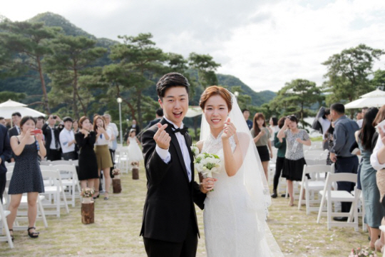 결혼식은 저희 삶의 신조처럼 ‘우리답게’ 진행됐습니다. 평범한 예식장은 저희와 어울리지 않는다고 생각했어요. 충북의 한 펜션을 빌려 야외 결혼식을 올리기로 했습니다. 플래너 없이 모든 걸 스스로 준비해야 했기에 그 과정이 쉽지는 않았습니다. 그럼에도 양가 부모님의 전폭적인 지지 덕에 힘을 낼 수 있었죠. 그런데 결혼식 당일, 태풍이 왔습니다. ‘큰일 났다’고 생각하던 중, 거짓말같이 식 시작 직전에 날이 갰습니다. 그 덕분에 기억에 남는 결혼식을 올릴 수 있었습니다. 앞으로도 예상치 못한 난관에 부딪히더라도 서로 의지하고 함께 이겨내며 좌충우돌 잘 살아보려 합니다.