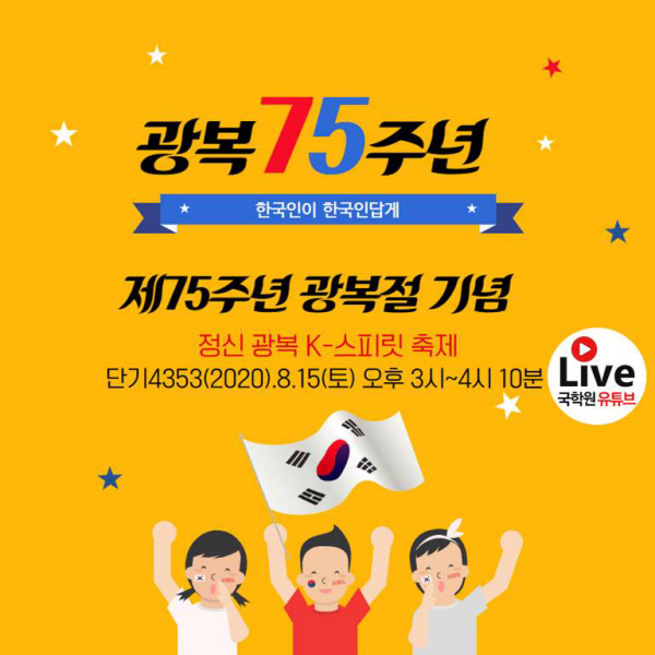 사단법인 국학원은 제75주년 광복절을 맞아 오는 8월 15일 ‘정신 광복 K-스피릿 축제’를 연다.