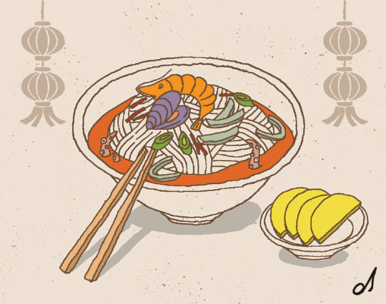 닭고기 육수에 면과 가늘게 채를 썬 재료가 들어가는 기스면은 ‘鷄絲麵(계사면)’이다. 첫 글자는 산둥식으로 읽고 두 번째 글자는 유산슬과 같은 글자인데 ‘스’로 읽는다. 마지막 글자는 우리의 한자음대로 읽는다. 한국어와 중국어 그리고 산둥 방언의 ‘짬뽕’이 중식당의 음식 이름인 것이다. 이상하다거나 엉터리라고 탓할 일이 아니다. 흔히 ‘중국집’이라 하지만 오래전부터 이 땅에 터를 잡고 ‘우리 음식’을 만들고 팔아온 결과일 뿐이다.