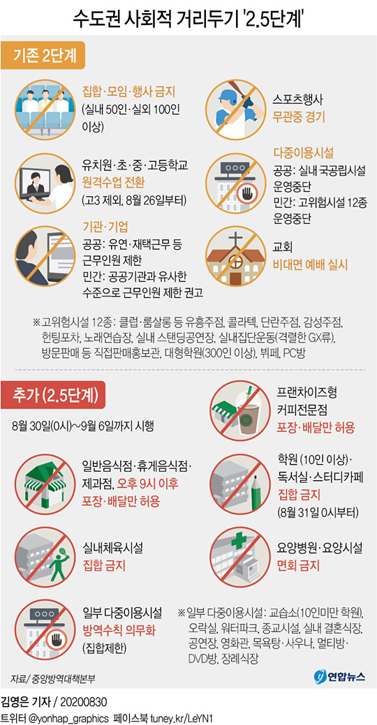 수도권 내 거리두기 2.5단계 조치에 따른 각종 영업 제한은 유지된다.