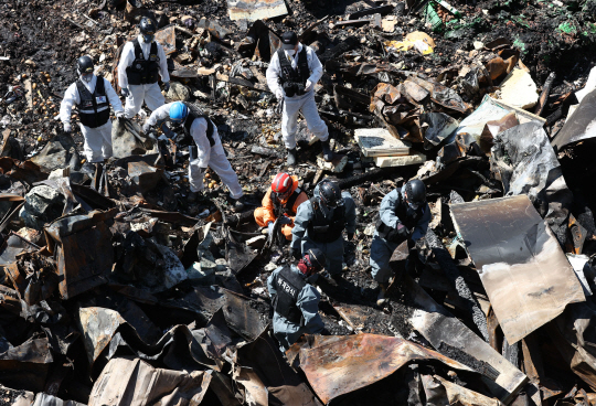 서울 동대문구 청량리청과물시장에서 추석 대목을 앞두고 지난 21일 불이나 상인들의 피해가 발생한 가운데 22일 오후 국립과학수사연구원 등 유관 기관 관계자들이 화재 현장을 합동 감식하고 있다.