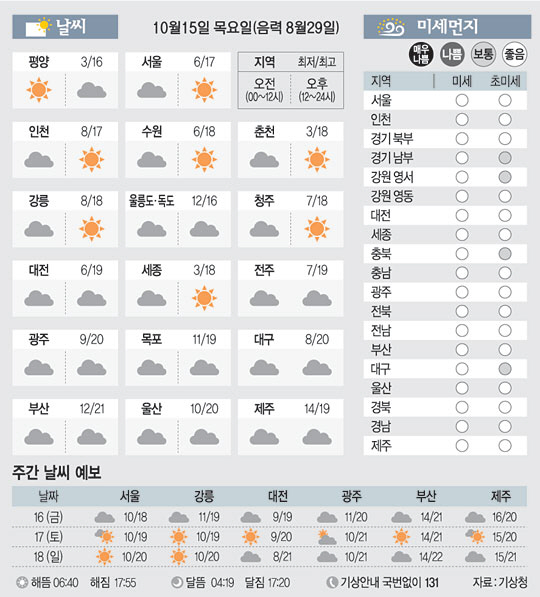 <날씨이야기>10월15일 목요일(음력 8월29일)