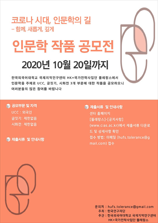 인문학에 관심 있는 사람이라면 누구나 참여 가능하며 기타 자세한 내용은 한국외대 국제지역연구센터 HK+국가전략사업단 홈페이지(http://cias.ac.kr/)에서 확인이 가능하다.