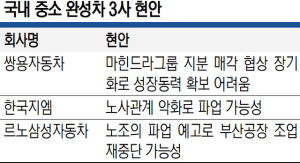 국내 완성차업계 중소 3사가 전례 없이 ‘추운 겨울’을 우려하고 있다. 신종 코로나바이러스 감염증(코로나19) 여파 속에 신규 투자 난항과 함께 ‘노조 리스크’ 등이 온갖 악재가 겹치면서 위기국면에서 벗어나지 못하는 형국이다. 쌍용자동차는 4분기 잇따른 신차 출시와 공격적 마케팅으로 국내 3위를 굳히겠다는 각오지만, 새 주인 찾기가 지지부진해 신성장 동력 확보에 어려움을 겪고 있다. 한국지엠과 르노삼성자동차는 노조의 파업 위협 속에 당장 4분기 실적 회복도 불투명하다. 한국지엠과 르노삼성차는 잊을 만하면 고개를 드는 ‘한국 철수설’에 골머리를 앓고 있다.