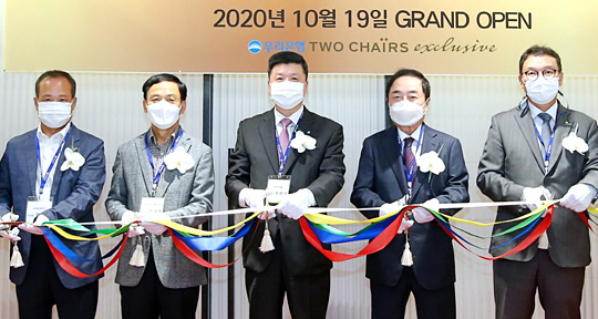 우리은행은 지난 19일 서울 역삼동 GS타워 6층에‘투 체어스 익스클루시브(Two Chairs Exclusive) 강남센터(TCE 강남센터)’를 개점했다고 20일 밝혔다. TCE강남센터는 우리은행 초고액자산가들을 위한 PCIB 적용모델 1호 영업점이다. 이날 개점식에는 권광석(왼쪽 세번째) 우리은행장을 포함, 우리은행 주요 고객 등이 참석했다.