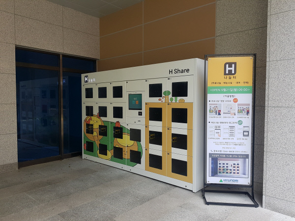H 나눔터는 재능 나눔, 이웃 간 무료 나눔(농산물 등), 생활품 대여 등을 입주민 카드 인증을 통해 신원 안전성 확보된 같은 단지 입주민들과 함께 활용할 수 있게 한 특화 공간이다. 디자인은 ‘H 아이숲’에도 적용된 현대건설의 상징색인 노란색과 녹색을 활용한 ‘새싹이 자라 녹음이 되는’ 모티브 디자인을 동일하게 적용해 친근성과 통일성도 도모했다.