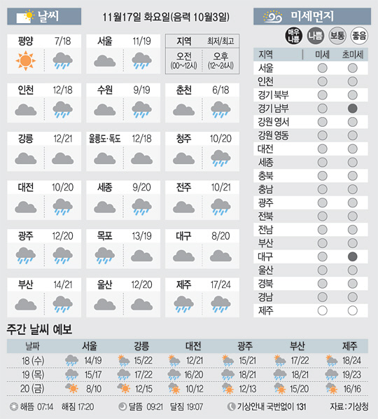 <날씨이야기>11월17일 화요일(음력 10월3일)