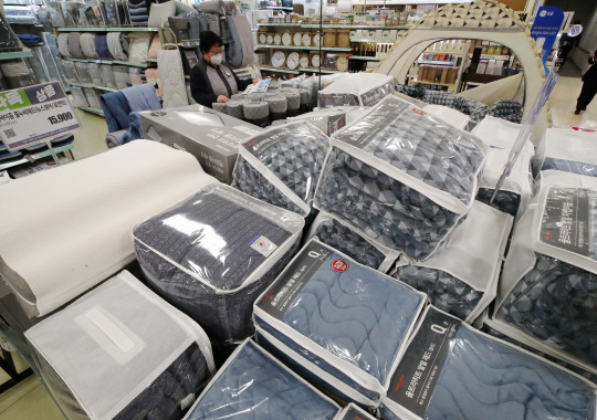 연일 강추위가 이어지면서 단열·방한용품 수요가 늘어난 가운데 17일 서울 시내 한 대형마트에 발열 이불과 난방 텐트가 진열돼 있다.