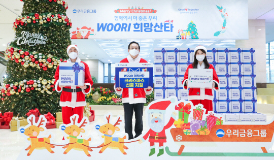 우리금융그룹은 지난 21일 서울 중구 우리은행 본점에서 손태승(가운데) 회장이 참석한 가운데 ‘함께여서 더 좋은 우리, WOORI 희망산타’ 캠페인 발대식을 열었다고 22일 밝혔다.