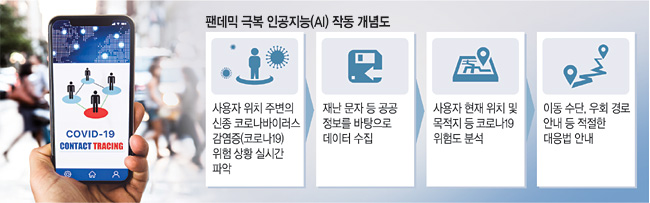 삼성전자, SK텔레콤, 카카오가 개발하는 ‘팬데믹(세계적 대유행) 극복 인공지능(AI)’은 사용자 위치 주변과 향후 이동 경로에서 신종 코로나바이러스 감염증(코로나19) 감염 위험도를 예측해 사전에 경고하고 개인 맞춤형 정보를 제공하는 게 핵심이다. 팬데믹 극복 AI가 출시되면 무차별적으로 확산해 불안 심리를 높이고 있는 코로나19 감염에 대한 국민의 걱정을 조금이라도 덜어줄 수 있을 것으로 기대된다.