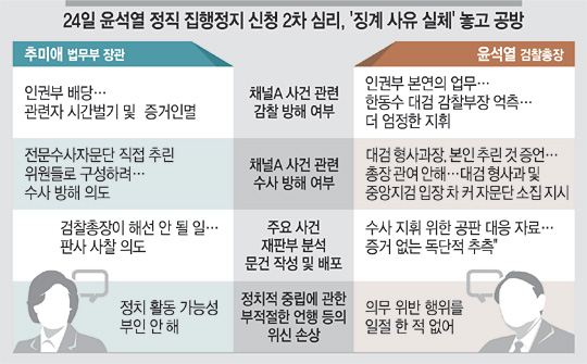 윤석열 검찰총장 측이 24일 ‘정직 2개월 징계’ 처분 집행정지 신청 2차 심리 기일을 맞아 핵심 징계 사유인 채널A 사건 수사 및 감찰 방해 의혹의 실체적 진실 문제를 놓고 추미애 법무부 장관 측과 치열한 공방에 들어갔다.