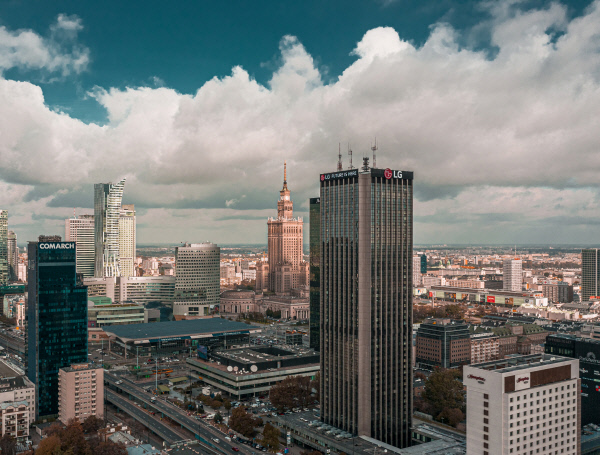 LG그룹은 유럽시장 생산거점인 폴란드 수도 바르샤바 초고층 건물에 LG 브랜드를 알리는 대형 옥외 광고를 설치했다고 3일 밝혔다.