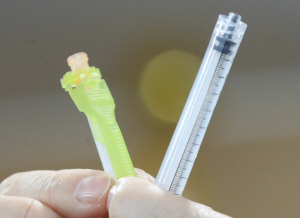 정부가 이르면 2월부터 시작될 신종 코로나바이러스 감염증(코로나19) 백신 접종에 대비해 삼성전자, 중소기업과 손잡고 백신용 주사기(사진)를 대량 생산한다. 박영선 중소벤처기업부 장관은 19일 오전 브리핑에서 “국내 중소기업인 풍림파마텍이 최소주사잔량(LDS) 기술이 적용된 코로나19 백신용 주사기를 월 1000만 개 이상 생산할 수 있는 스마트공장 양산 체계를 구축했다”고 밝혔다. 이에 따르면, 일반 주사기로는 코로나19 백신 1병당 5회분까지 주사할 수 있지만, 풍림파마텍 주사기로는 1병당 6회분 이상 주사할 수 있다. 풍림파마텍 백신주사기와 주사 과정에서 감염 확산 방지를 위해 갖춰야 하는 안전 보호 가드 및 주사침은 각각 지난 6일과 15일, 식품의약품안전처로부터 국내 사용 허가를 받았다. 미 식품의약국(FDA)에도 주사기 긴급사용승인요청서가 제출됐으며, 이달 말쯤 승인 여부가 결정될 것으로 예상된다.