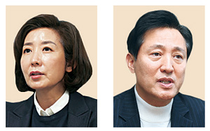 나경원(왼쪽 사진) 전 국민의힘 의원과 오세훈(오른쪽) 전 서울시장이 4월 서울시장 보궐선거 당 경선 여론조사를 앞두고 서로 다른 행보를 보이고 있다. 나 전 의원은 ‘보수 지지층 결집’에, 오 전 시장은 ‘중도층 포섭’에 무게추를 둔 모양새다.