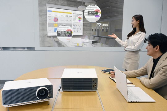 LG전자가 고해상도 비즈니스 프로젝터 ‘LG 프로빔’ 신제품(사진) 2종을 국내에 출시하고 상업용 프로젝터 시장을 공략한다고 22일 밝혔다. LG 프로빔은 LG전자가 지난해 처음으로 선보인 비즈니스 프로젝터 브랜드다. LG전자는 가정용은 ‘LG 시네빔’, 사무용은 LG 프로빔으로 프로젝터 제품군을 이원화해 운영하고 있다.