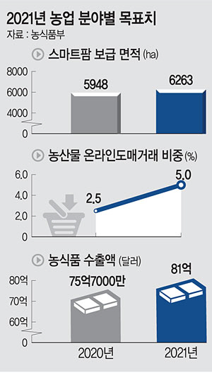 ◇지난해 성과와 한계=농식품부는 지난해 굵직한 현안들을 해결했다. 먼저 오랜 기간 문제로 지적돼온 쌀 직불제를 종식하고, 공익직불제를 새롭게 시행하며 제도 안착에 성공했다. 또 양파·마늘 의무자조금 결성 및 관측 방식 개선 등을 통해 매년 반복된 농산물 수급 불안을 해소했다. 수출시장 다변화 및 적극적인 비대면 홍보로 농식품 수출 확대 성과도 거뒀다. 아프리카돼지열병(ASF)의 창궐에도 적극적인 방역 정책을 통해 조기 차단에 성공했다. 반면, 제도 정비는 상대적으로 미흡했다는 평가다. 특히 코로나19가 촉발한 시대적 변화 대응과 탄소중립 사회 이행을 위한 농업·농촌 분야 과제 발굴과 시책화에는 상대적으로 정책 노력이 부족했다는 자체 진단을 내리기도 했다.