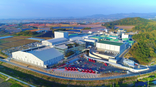 하림은 지난 2014년 120억 원을 투입해 전북 익산 공장(사진)에 신재생 친환경 시설인 ‘친환경 바이오매스 기포유동층 보일러’를 구축했다. 탄소 중립을 선제적으로 대응하기 위해 국내 식품업계 최초로 도입된 시설이다. 기존 화석연료의 하나인 벙커시유 대신 폐목재를 재활용한 바이오매스 고형연로를 사용해 폐기물도 줄이고 질소산화물, 황산화물 등 대기오염물질도 대폭 낮춘 것이다.