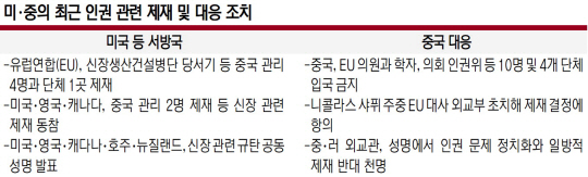 이런 가운데 왕이(王毅) 중국 외교담당 국무위원 겸 외교부장은 24일부터 30일까지 사우디아라비아와 터키, 이란, 아랍에미리트(UAE), 바레인을 공식 방문하는 등 대중동 우군 확보 외교에 나섰다. 23일 왕 부장은 세르게이 라브로프 러시아 외교장관과 공동성명에서 미국 등을 겨냥해 “인권 문제를 정치화하거나 이를 통해 다른 나라 내정에 간섭하는 것에 반대한다”고 밝혔다.