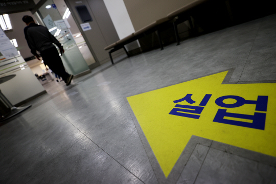 24일 오후 한 시민이 서울 마포구 서부고용복지센터로 들어서고 있다.