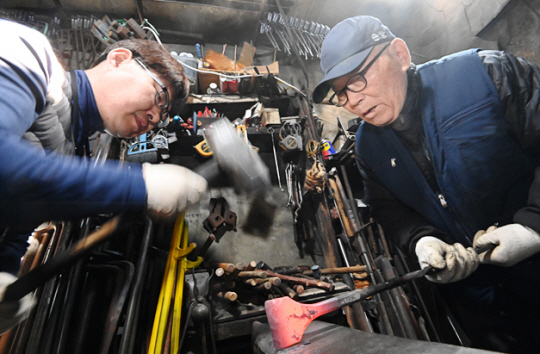벌건 쇳덩이는 이어지는 망치질에 낫도 되고 호미도 되고 괭이도 된다.